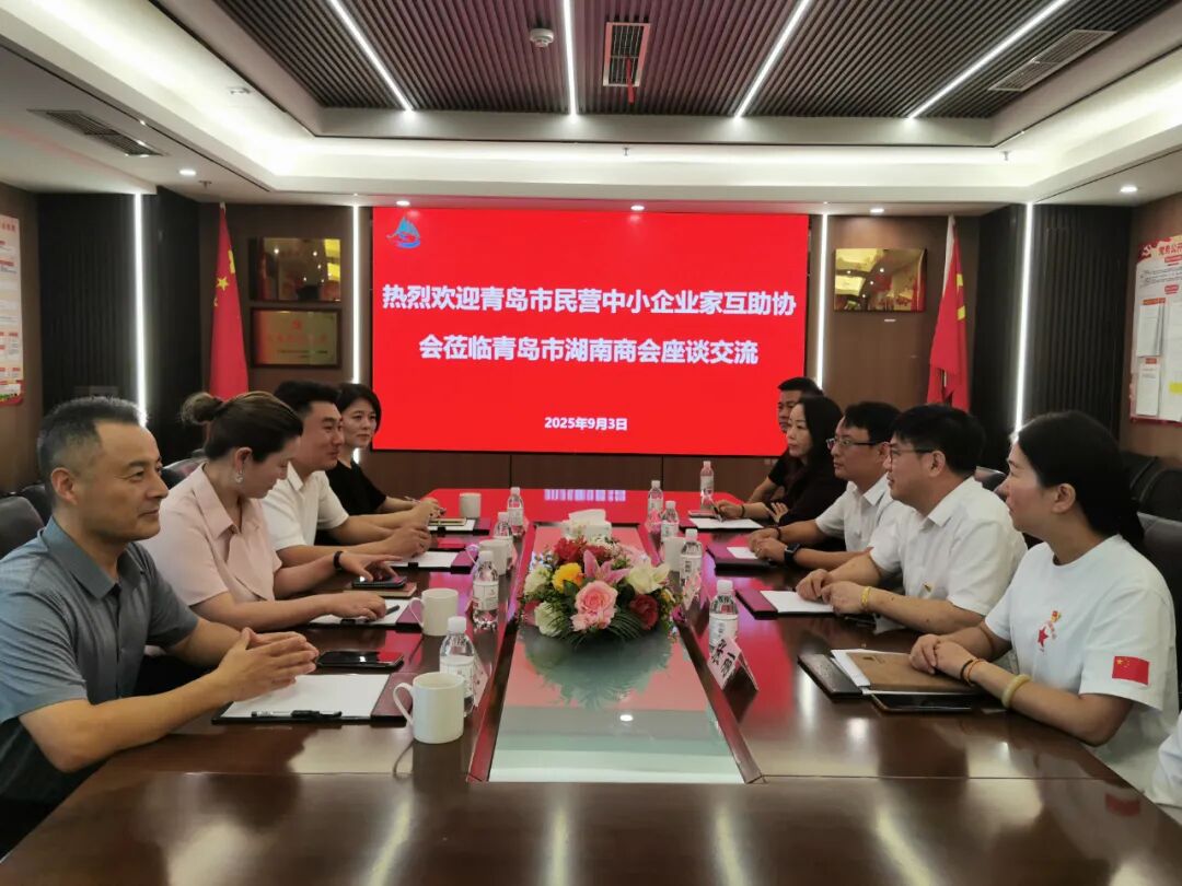 2025年9月3日,时值中国人民抗日战争胜利80周年纪念日,青岛市民营中小企业家互助协会会长刘俪、秘书长范思哲、办公室主任李忠亮及秘书处颜丹丹一行4人走访青岛市湖南商会,与湖南商会会长刘文、书记张丽、秘书长卿斌、轮值会长周茜、彭胜等共同观看“9.3大阅兵”直播,并举行座谈交流。双方围绕商会建设、党建创新、区域合作等议题进行深入探讨,并成功签署战略合作协议,标志着两个商协会合作进入新阶段。 亮点回顾 在庄严的抗战胜利纪念日氛围中,两会代表共同观看“9.3大阅兵”直播,感受国防现代化建设的辉煌成就,凝聚爱国情怀与奋斗精神。座谈会上,卿斌秘书长详细介绍了湖南商会的发展历程、运行机制及服务会员的创新实践。张丽书记重点分享了商会在党建工作方面的优秀做法和取得的显著成绩,强调商会始终坚持强化思想政治引领,引导会员坚定不移听党话、感党恩、跟党走。刘文会长介绍了企业发展情况,并重点阐述了近年来在青岛和湖南两地政府关心支持下,商会积极发挥桥梁纽带作用,为促进两地经济交流和会员企业发展做出的积极贡献。 在热烈融洽的氛围中,双方基于"平台共筑、资源共享、服务共优、互利共赢"的原则,签署了战略合作协议。根据协议,双方将建立常态化合作机制,在信息共享、活动共办、资源对接、商务合作等领域开展深度合作,充分发挥各自优势,积极推动青岛与湖南两地的经济交流与合作,为会员企业拓展发展空间,促进区域经济协同发展。 此次合作是两地商会携手服务企业、促进区域协调发展的重要举措。双方将以此为契机,积极探索商协会合作新模式,共同为会员单位提供更优质的服务,为推动青湘两地经济高质量发展注入新动能。