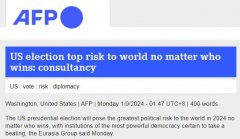 中新网 1月10日电 据法新社报道,日前,政治风险咨询公司欧亚集团表示,无论谁获胜,2024年美国总统选举都将给世界带来最大政治风险,美国制度将会受到打击。 图片来源:法新社报...