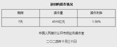 中新网 10月30日电 据央行网站消息,为维护月末银行体系流动性合理充裕,2024年10月30日人民银行以固定利率、数量招标方式开展了4310亿元逆回购操作。具体情况如下: 图自央行网站...