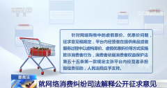 央视网消息: 最高人民法院昨天(12月27日)发布公告,为妥善审理网络消费纠纷案件,依法保护消费者合法权益,促进网络经济健康持续发展,就《关于审理网络消费纠纷案件适用法...