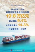 海关总署7月13日发布数据显示,2022年上半年,我国货物贸易进出口总值19.8万亿元,同比增长9.4%。 其中,出口11.14万亿元,增长13.2%;进口8.66万亿元,增长4.8%。6月当月,...