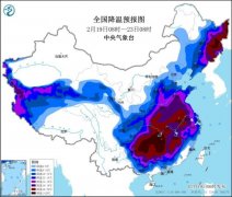 中新网 2月19日电 据中央气象台网站消息,受寒潮影响,预计,2月19日至22日,我国中东部大部将自西向东、自北向南先后出现剧烈降温,日平均或最低气温普遍下降8~12℃。2月19日至...