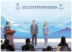1月5日,北京冬奥组委新闻发言人赵卫东(上中)和严家蓉(上右)亮相。新华社记者鞠焕宗摄 新华社北京1月5日电(记者姬烨、汪涌、王梦)5日,北京冬奥组委新闻发言人亮相暨主媒...
