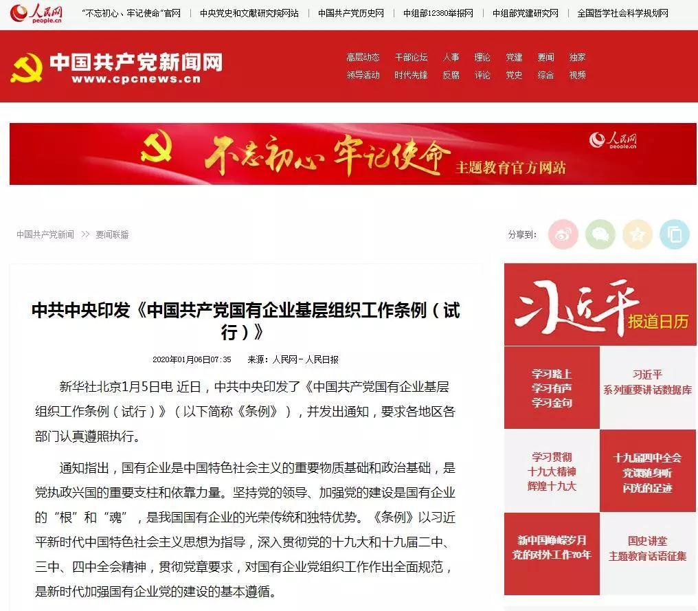 点击蓝字阅读《中国共产党国有企业基层组织工作条例(试行)》全文